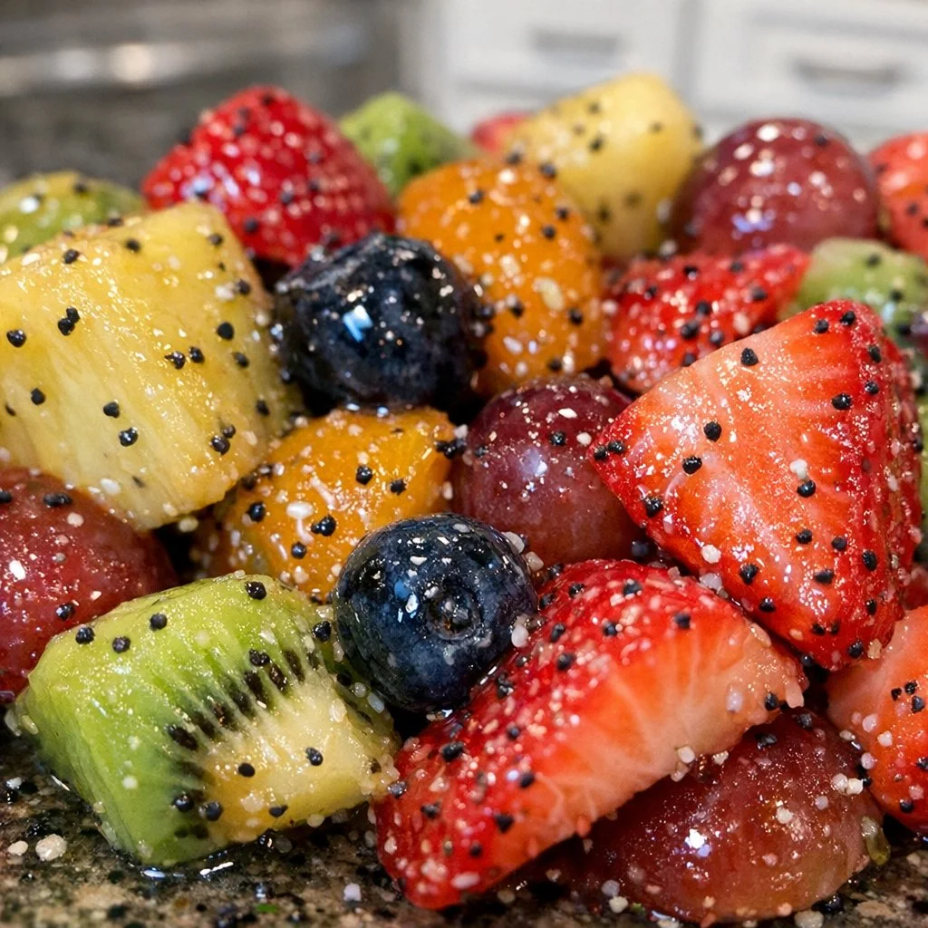 Fresh Fruit Salad with Honey Lime Poppy Seed Dressing