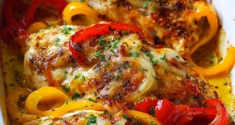 Cheesy Baked Chicken Breast and Peppers is a delicious and satisfying meal. It combines tender chicken breasts with vibrant bell peppers and gooey cheese. This dish is easy to make, packed with flavor, and can be prepared in one baking dish. It’s perfect for busy weeknights or special occasions when you want to impress family and friends with minimal effort.