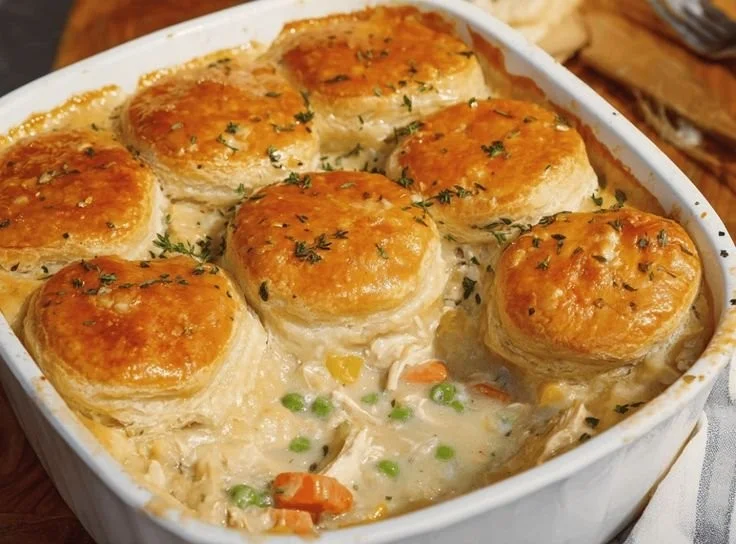 Chicken pot pie casserole is a comforting dish that combines the flavors of chicken, vegetables, and a flaky biscuit topping. It’s easy to make and perfect for a family dinner. You can use leftover chicken, which makes it a great way to save time in the kitchen.