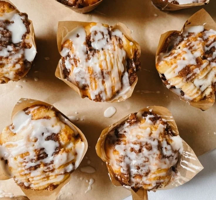 Assembling: Preheat your oven to 350°F (175°C) and prepare a muffin tin with liners or cooking spray. Fill each muffin cup about halfway with the batter, then add a spoonful of the cinnamon sugar filling on top. Add more batter to fill the cups to about ¾ full. Finish by sprinkling more cinnamon sugar on top.