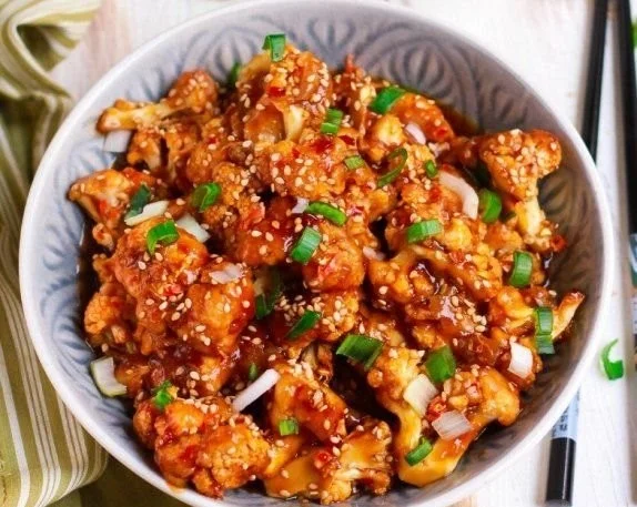 Assembly: Once the cauliflower is baked, remove it from the oven and toss it in the sauce until evenly coated. Serve hot, garnished with sesame seeds, sliced spring onions, and chilies.