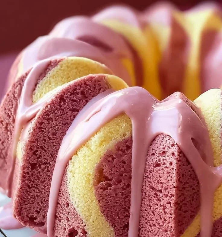 - Alternate spoonfuls of plain and pink batter into the bundt pan to create a swirl effect.